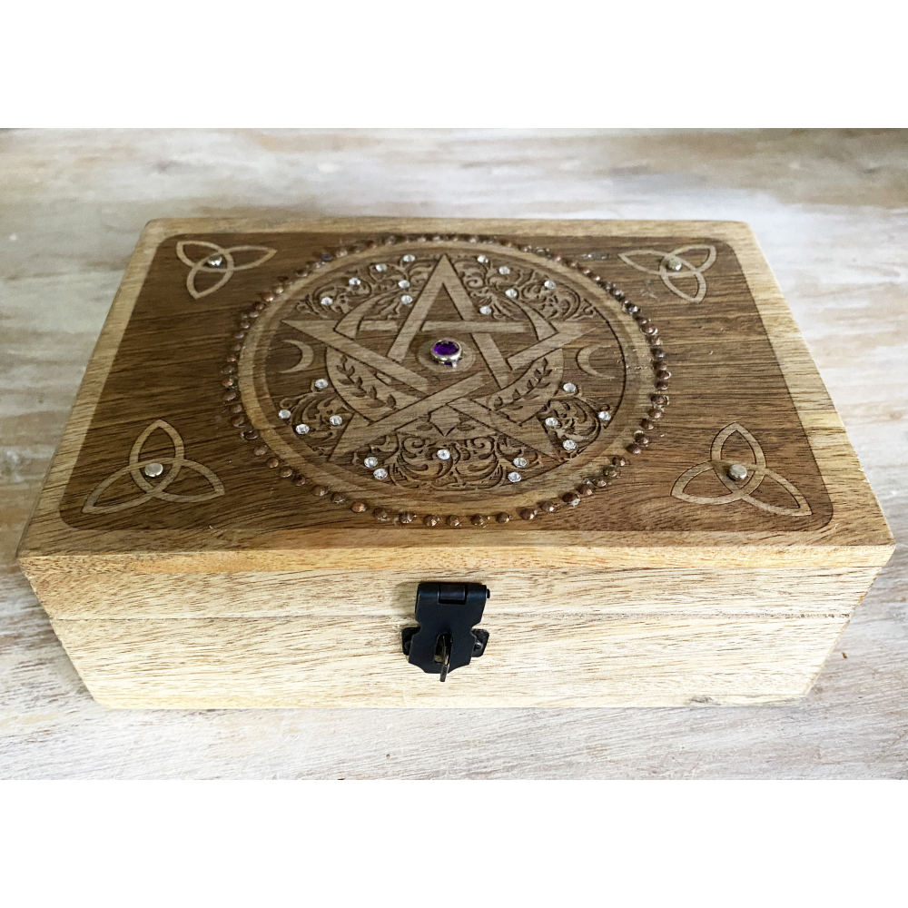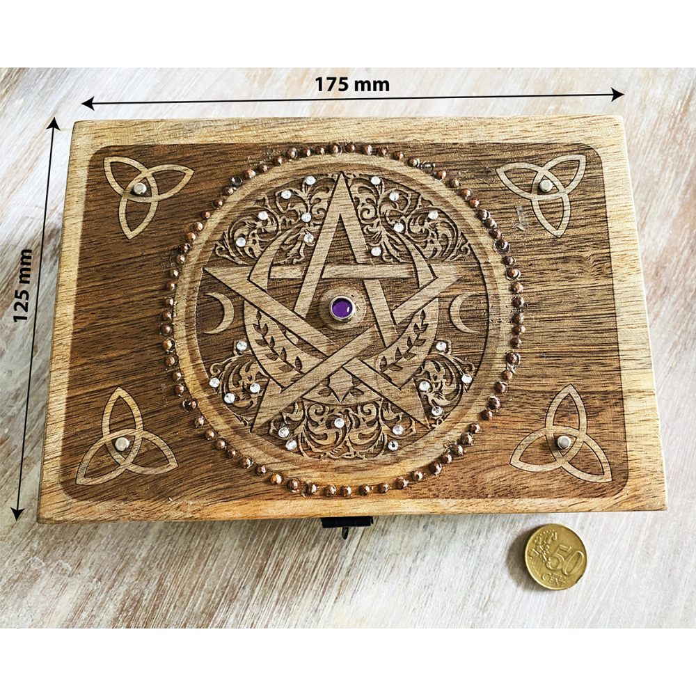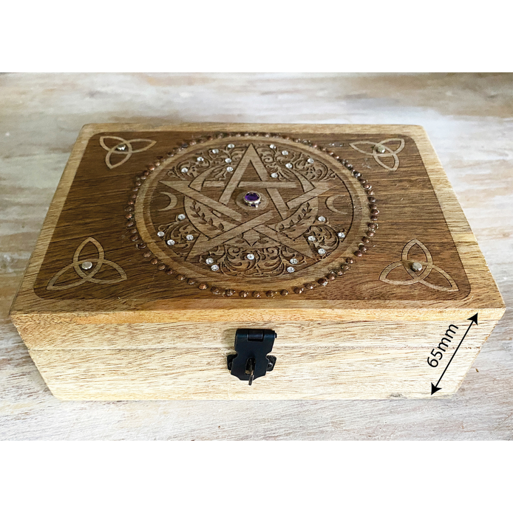 Houten opbergkistje Pentagram - Tripple moon - Triquetra | Naturel | 175x125x65 mm | Mooi&Magisch