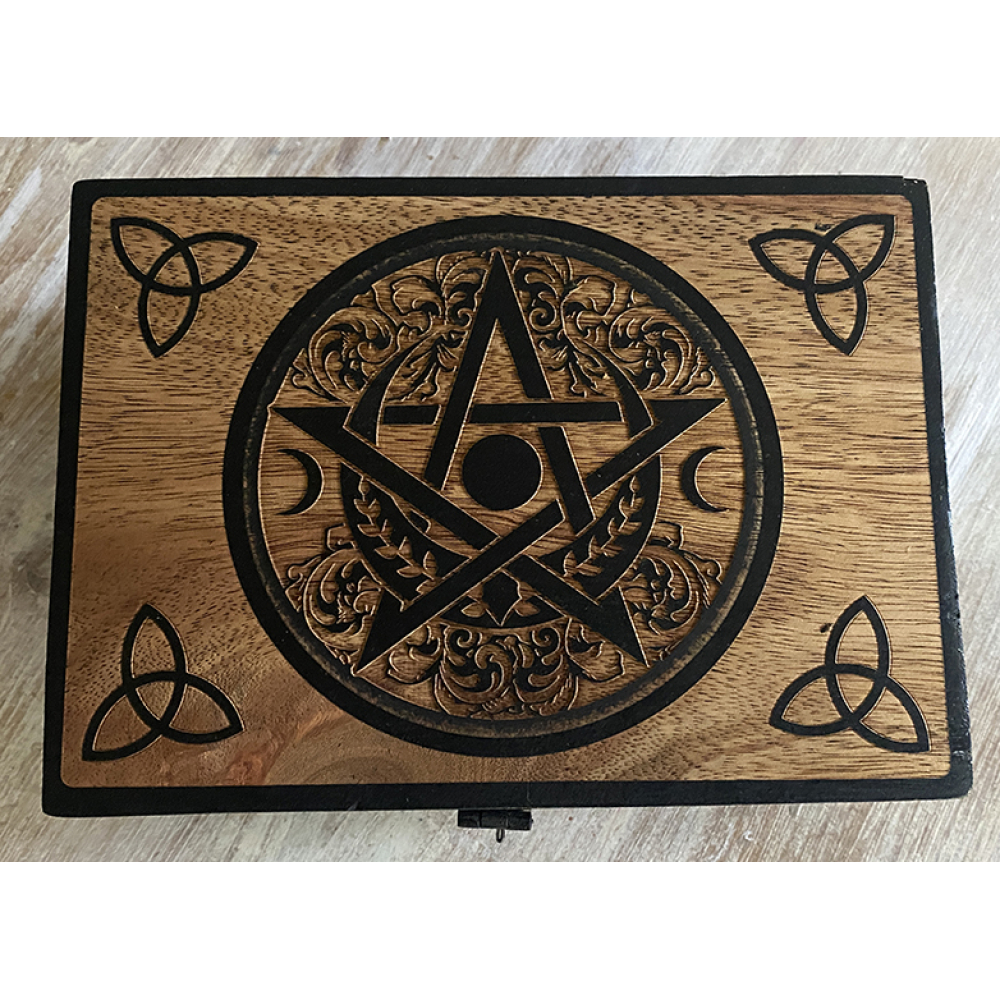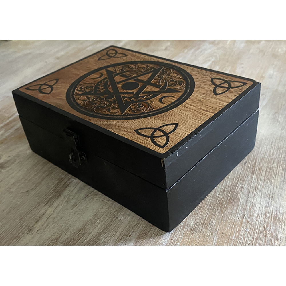 Houten opbergkistje Pentagram - Tripple moon - Triquetra | Zwart | 175x125x65 mm | Mooi&Magisch
